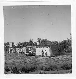 William Gilbert drove 1000 head of cattle from Adelaide to the MacDonnell Ranges in 1872, with Ted Bagot (1848–1881) and his foster-brother James Churchill-Smith (1851–1922). It was considered to be one of the great droving feats in Australian pastoral history. Gilbert obtained the lease for Owen Springs station in 1873, appointing Archie Conway as manager.[3] The station was stocked with cattle and horses and two log huts were constructed. The first hut was completed by 7 August 1873 and the other was nearly completed. These timber buildings were the earliest buildings to be constructed in Central Australia.[4] He sold the station after the death of his father to Sir Thomas Elder in 1886, who attempted to breed horses for the Indian Army. After sustaining significant losses, Elder was forced to sell Owen Springs in 1894, inclusive of the stock to an unidentified stock and station agent. The following year a consortium comprising Charles Gall, Allen Breaden and Sir Sidney Kidman purchased the station.[4] From 1896 to 1901, Kidman and his brother Sack mustered horses off Owen Springs and sold them into southern markets before abandoning the station.[5] Dennis White, a bushman who formed part of Peter Warburton's exploration team, committed suicide at Owen Springs Station in 1898.[6]