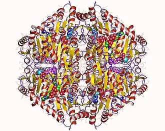 12. ^ Berthold CL, Moussatche P, Richards NG, Lindqvist Y (December 2005). "Structural basis for activation of the thiamin diphosphate-dependent enzyme oxalyl-CoA decarboxylase by adenosine diphosphate". The Journal of Biological Chemistry. 280 (50): 41645–54. doi:10.1074/jbc.M509921200. PMID 16216870.