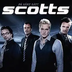På vårt sätt is a studio album from Scotts, released on 19 December 2008.[1] The album topped the Swedish albums chart between 2 and 23 January 2009. The album featured the single "Om igen", peaking at number 27 on the Swedish Singles Chart[2] and also charting at Svensktoppen.[3] The other recordings were cover versions, many of them of songs performed by Scotts during Dansbandskampen 2008.