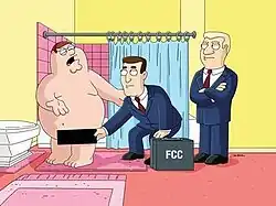 ![]() Promotional image of Federal Communications Commission officials censoring Peter after seeing him walk out of his shower. | |