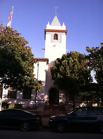 By 1929 the town consisted of about 365 homes with about 1,000 residents, who mostly resided in the "Alphabet Streets" neighborhood, although residential construction was now expanding into what would later become the Castellammare, Huntington and Paseo Miramar neighborhoods.[27] On August 18 of that year, the cornerstone was laid for the foundation of the Methodist Episcopal Church on Via de la Paz, which at that time was the community's only church. Directly across the street, planning was underway for the town's first permanent school building which would later become known as "Palisades Elementary", which was dedicated on June 12, 1931.[26]