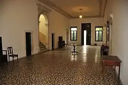 The complex consists of a central body, two lateral "barchesse" (wings), a chapel, a park and from the remains of a hemicycle situated at the front. The main building has a rectangular plan and is on three floors. The structure is typical of the Venetian Villas. Is made up of a through-hall onto which overlook symmetrically the doors of the side rooms, by a monumental staircase with pincer form leading to the main floor which has a similar shape. A service staircase leads to the second floor that was probably inhabited by the servitude and used occasionally from the property in the cooler months. Front of the building along the highway, lies what remains of an exedra which once was an integral part of the complex and of which now remains only a niche where there is a statue which is said to represent Hercules. Now this annexe is not owned, has lost most of the ornaments of which was composed and is detached from the park which is located in the back of the villa and that instead still keeps six well-preserved statues positioned over the original foundations. These statues, paired two by two, constituted the entrance of the three avenues penetrating into the Italian park that now no longer present.