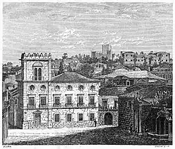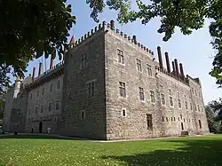 The residence was ordered to be built in the first quarter of the 15th century (likely 1420 to 1422) by Afonso, Count of Barcelos, the illegitimate son of John, and future Duke of Braganza, following his return to Portugal after a series of diplomatic missions to the Courts of France, Venice, Aragon and Castile.[1] The construction of this building marked the concretization of his second marriage, when he took residence in the town.[2][3] The project was given, as some authors have suggested, to French architect Antom. Yet, by 1442, it was still under construction when the Regent Peter came to Guimarães and stayed at the Palace, at the time conferring on his half-brother the title of 1st Duke of Braganza.[1] The commission continued into 1461, when Afonso died:[4] the property and titles passed on to his brother, Fernando, although the widow, Constança de Noronha, continued to live at the residence and received the land rents from the holdings in Guimarães.[1]