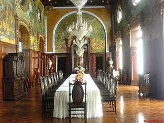 Located next to the Yellow Room, this is the presidential dining hall. It is decorated with large murals depicting the harvest of tamarinds and hunting scenes from Taboga Island. These murals were commissioned in 1938 by President Juan Demóstenes Arosemena and painted by Roberto Lewis.
