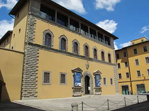 The building was designed by Giuliano di Baccio d'Agnolo in strict Florentine forms and realised by the mid-16th century. It was badly damaged in the last war, but later restored.[1]