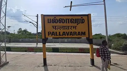 Pallavaram Railway Station is one of the terminal for Southern Line of Chennai Suburban Railway Network next to Tambaram Railway Station and Chengalpattu Railway Station. During Meter Gauge several years back, Eight Peak Hour Services between Chennai Beach and Pallavaram Railway Station has been operated. Later, the services were removed after conversion to Broad Gauge.[5]