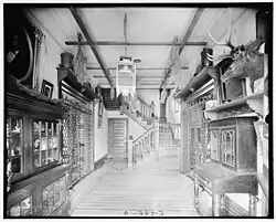 The Palmers were not ostentatious people, who enjoyed spending their summers at the log cabin and sharing it with their neighbors as well as friends and acquaintances from all over the nation.[19] In 1911, a writer for a horse-breeding gazette recalled that “there was no formality” at Log Cabin feasts; “Dinner,” he wrote, “was announced with an old tin horn.” Whenever a fellow Senator visited, Palmer asked him to plant a tree, from which he hung a brass plaque engraved with his name.[7]