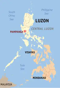 Pampanga's 1st congressional district is one of the four congressional districts of the Philippines in the province of Pampanga. It has been represented in the House of Representatives of the Philippines since 1916 and earlier in the Philippine Assembly from 1907 to 1916.[3] The district consists of the independent city of Angeles, the adjacent city of Mabalacat, and the municipality of Magalang. It is currently represented in the 20th Congress by Carmelo Lazatin Jr. of the Partido Federal ng Pilipinas (PFP) and Kambilan.[4][5]