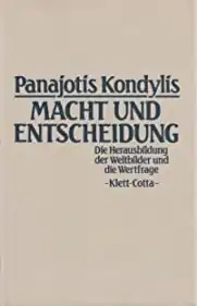 In Macht und Entscheidung (Power and De-cisio)[8] Kondylis set forth the theoretical basis for his attitude to existence and his own endeavours as an author and social scientist. "Decision" is here conceptualised differently from its hitherto known varieties in decisionism; now it appears as a theory about the emergence of individual and collective worldviews. Such an emergence as a function of power i.e. self-preservation through self-enhancement (or self-intensification), always refers to enemy positioning, and as such always contains normative elements within itself. Kondylis examines the claimed bindingness and also ambiguity inherent in all ideologies and social institutions. Drawing from anthropology, philosophy, sociology and history, concepts such as value, value-freedom and nihilism are explored. It is claimed that the infinite variety of human perceptions, beliefs, ideologies, i.e. world-views, are nothing more than an effort to give personal interests a normative form and an objective character, deriving from a "decision" on what means should be used, who should be a friend and who a foe, in the big "Hobbesian" struggle for what is the most primitive and common goal of all humans – self-preservation. Therefore, personal and/or group world-views and ideologies in general are used as a weapon in everyday struggle for the purpose of power claims and self-preservation. Social and historical being and becoming consist of transitory existences – regardless of whether they invoke Reason and ethics or not – seeking power (in any one or more of its forms). That is how Nature's (and society's) creatures are, and they cannot do otherwise.