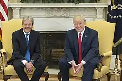 100. ^ "Trump accoglie il premier Gentiloni alla Casa Bianca: "Italia partner chiave contro terrore"" [Trump invited Prime Minister Gentiloni to the White House: "Italy key partner against terror"]. la Repubblica (in Italian). 20 April 2017. Retrieved 14 April 2019.