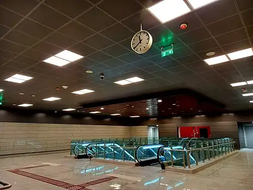 Papafi (Greek: Παπάφη, listen)[3] is a metro station serving Thessaloniki Metro's Line 1 and Line 2. The station is named after the Ioannis Papafis, a Thessaloniki-born merchant, entrepreneur, and national benefactor of Greece. The station is built within the grounds of the Papafio Orphanage, a male-only orphanage financed by Papafis and operated by the Metropolis of Thessaloniki. Construction of this station was held back by conflicts between the Metropolis and Attiko Metro, the company overseeing its construction. The Metropolis challenged the company's right to the compulsory purchase of 907 square metres (9,760 sq ft) of the orphanage's garden grounds, resulting in a legal battle which reached Greece's Council of State.[4] It entered service in 2024.[5]