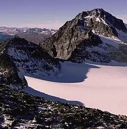 The Paradies Glacier (German: Paradiesgletscher) is a 2.27 km long glacier (2007) situated in the Lepontine Alps in the canton of Graubünden in Switzerland. In 1973, it had an area of 3.99 km2.
