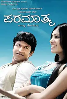 Paramathma is a 2011 Indian Kannada-language romantic comedy film written, directed and co-produced by Yogaraj Bhat.[3] It stars Puneeth Rajkumar and Deepa Sannidhi in the lead roles and was released on 6 October 2011,[4] on the eve of Vijayadashami.[5] Halfway through its production, the film's TV rights was procured for a record 3.5 crore.[6][7] Even before the release, the film grossed a record amount of over 25 Cr included broadcasting and distribution rights.[8][9] Since release, the movie has garnered a cult status for its metaphorical narration and out-of-the box storytelling.[10]