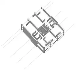 The footprint of the four blocks, with the paths and low-lying structures beneath