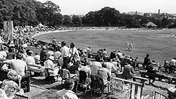 Park Road is a cricket ground in Buxton, Derbyshire, England. It is the home ground of Buxton Cricket Club, and was formerly used by the Derbyshire County Cricket Club first XI between 1923 and 1986. The first First-class match on the ground was in June 1923, when Derbyshire faced the touring West Indians. The ground’s biggest claim to fame came in 1975, when the second day’s play of the County Championship match against Lancashire was wiped out due to snow.[1] Derbyshire generally played one County Championship match at Buxton every year from 1930 to 1976, but have only played there four times since. The most recent first-class match was in August 1986 against Lancashire, who have provided the opposition for 26 of the 48 first-class games at the ground. The ground also hosted ten Derbyshire List A fixtures between 1969 and 1986.