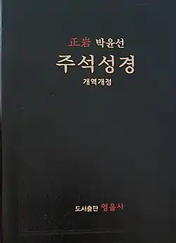 1. ^ 김, 승태. "박윤선 (朴允善)". Encyclopedia of Korean Culture (in Korean). Academy of Korean Studies. Retrieved 24 March 2024.