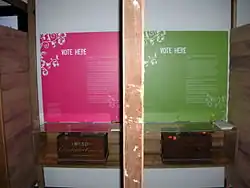 Recreated lower and upper house booths, history, and voting procedures
