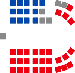 One distinctive aspect of the history of the South Australian parliament was the "Playmander", a gerrymandering system that instituted a pro-rural electoral malapportionment introduced by the incumbent Liberal and Country League (LCL) government, and in place for 32 years from 1936 to 1968.[27] The already entrenched rural overweighting was increased to a 2:1 ratio, the number of MPs was reduced to 39 and the multi-member seats were abandoned for single-member seats. The House of Assembly now consisted of 26 low-population rural seats, which due to population shifts, were holding up to a 10-to-1 advantage over the 13 high-population metropolitan seats, even though rural seats contained only a third of South Australia's population. At the peak of the malapportionment in 1968, the rural seat of Frome had 4,500 formal votes, while the metropolitan seat of Enfield had 42,000 formal votes.[17]