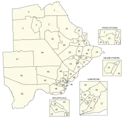 - ^ Parliament of Botswana. "Members of Parliament and Constituencies". Archived from the original on 29 November 2014. Retrieved 15 November 2014.
