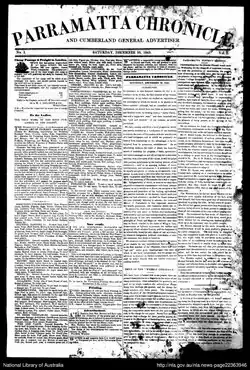 - ^ a b "The Parramatta Chronicle and Cumberland General Advertiser". TROVE, National Library of Australia. 31 October 2017.