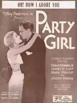 Party Girl is a 1930 American pre-Code crime film directed by Victor Halperin and starring Douglas Fairbanks Jr., Jeanette Loff, and Marie Prevost. It is also known by the alternative title of Dangerous Business, the title of the novel on which it is based. It follows a New York businessman who inadvertently becomes involved in the criminal activities of a covert escort agency.