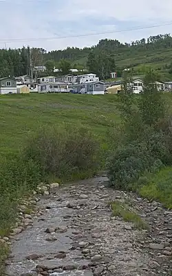 Highway 2 used to follow Pat's Creek into the Town of Peace River but had to be abandoned due to massive landslides on the section between Grouard Hill and Kauffman Hill. It is currently a 3 km (1.9 mi) wilderness interpretive trail above the creek.[2]