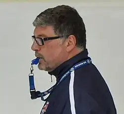 4. ^ "The national team's new coach: Dual role for Pat Cortina". Süddeutsche.de. 17 September 2012. Retrieved 8 May 2013. Jetzt ist es offiziell: Pat Cortina ist neuer Eishockey-Bundestrainer. Der 48-jährige Italo-Kanadier übernimmt neben dem Chefposten an der Bande auch die Aufgaben des DEB-Sportdirektors. Gleichzeitig trainiert er zumindest für diese Saison auch weiter den DEL-Klub EHC München.