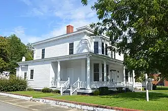 Patrick-Carr-Herring House, also known as the Second Sampson County Courthouse, is a historic home located at Clinton, Sampson County, North Carolina. It was built about 1904–1905, and is a two-story, three-bay, double pile, Classical Revival / Greek Revival style frame dwelling with a low-pitched hip roof. It was originally built as a 1+1⁄2-story structure on tall brick piers in 1818, and enlarged to a full two stories in the Greek Revival style on a full one-story brick basement in the 1840s. It was moved to its present site, and remodeled, in 1904–1905, when the current Sampson County Courthouse was constructed. The front features a single-story wraparound porch with Tuscan order columns and bracketing. Also on the property is a contributing smokehouse (c. 1904).[2]