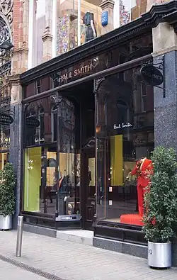 Smith opened his own shop, Paul Smith Vêtements Pour Homme,[8] in Nottingham in 1970, selling established clothing labels, alongside Smith's own designs. The shop, located at 6 Byard Lane in Nottingham, was just three square metres floor area.