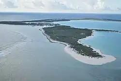 Peale is on the north-west side of Wake Island, and major points on Peale include Toki Point, which is the western cape of Peale. On the southern side there is an extension of land into the lagoon that points south-east and ends at Flipper Point.[3] It is separated from Wake Island by a channel which, from World War II to the 21st century, was crossed by a wooden bridge. The bridge had burned down by 2003.