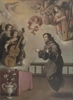 According to art historian Antonio Palomino, Pedro de Obregón was initially taught by Vincenzo Carducci, and became one of his best pupils, imitating the teacher in drawing. Palomino asserts that he painted many pictures for individuals and few to the public, although some notable works include a Holy Trinity for the convent of the Merced Calzada of Madrid, and San Joaquin and Santa Ana, commissioned by the Church of Santa Cruz, also of Madrid. These pieces were lost, but one noted was the Apparition of the Infant Jesus to San Antonio dated 1633, in the convent of Santa Clara in Villacastín.