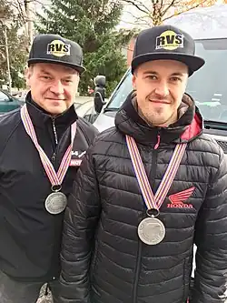 Pekka Päivärinta and Jussi Veräväinen celebrating their first season of cooperation, after which they became silver medalists. 20 October 2018.