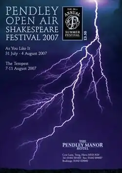 The Pendley Open Air Shakespeare Festival is, as the name implies, an annual festival dedicated to the plays of William Shakespeare. It takes place at the beginning of August at Pendley Manor, a hotel in Tring, Hertfordshire.