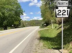 Pennsylvania Route 221 (PA 221) is a 31-mile-long (50 km) state highway located in Greene and Washington counties in Pennsylvania. The southern terminus is at PA 188 near Jefferson. The northern terminus is at PA 231 in Acheson.
