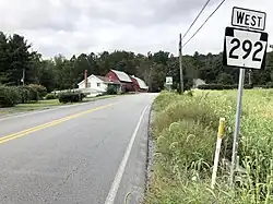 Pennsylvania Route 292 (PA 292) is an 11.5-mile-long (18.5 km) state highway located in Wyoming County, Pennsylvania. The western terminus is at PA 29 near Evans Falls. The eastern terminus is at PA 92 in Exeter Township. The route is a two-lane undivided road that passes through rural areas in the southern part of Wyoming County, serving the communities of Vernon and Center Moreland. PA 292 was designated in 1928 between PA 92 (now PA 29) and U.S. Route 309 (US 309, now PA 92), with the route east of Center Moreland following Creamery Road, Schoolhouse Road, and Keelersburg Road. The route was moved to its current alignment east of Center Moreland by 1930 and the entire route was paved in the 1930s.