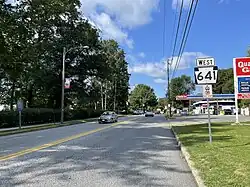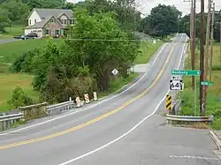 In 1937, PA 641 was extended west from Carlisle to PA 433 at the intersection of Amberson Road and Timmons Road, following its current alignment. The route ran concurrent with PA 433 between Roxbury and Cold Spring Road. The extended PA 641 designation replaced PA 333 between Roxbury and Newburg.[9][10] The entire length of PA 641 was paved in the 1930s along with the section of PA 433 between Shade Gap and the western terminus of PA 641.[10] The eastern terminus of PA 641 was moved to its present location at US 15 in the 1950s, with a rerouted US 15 replacing the route along 32nd Street.[11] In the 1960s, PA 641 was extended west to its current terminus at US 522 in Shade Gap, replacing the section of PA 433 between Shade Gap and Amberson Road. In addition, the concurrent PA 433 designation was removed from PA 641 between Cold Spring Road and Roxbury.[12]