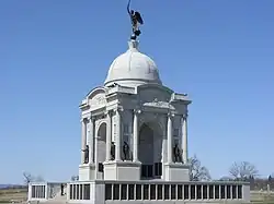 The Pennsylvania State Memorial[2] is a monument in Gettysburg National Military Park that commemorates the 34,530 Pennsylvania soldiers who fought in the July 1 to 3, 1863 Battle of Gettysburg during the American Civil War. The memorial stands along Cemetery Ridge, the Union battle line on July 2, 1863.[3] Completed in 1914, it is the largest of the state monuments on the Gettysburg Battlefield.[4]