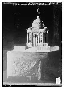 Eighteen years later, the Pennsylvania Legislature appropriated $150,000 for construction of a state memorial, and the current site was announced in February 1909.[8] The design competition for the commission was won by the entry of New York architect W. Liance Cottrell and Philadelphia sculptor Samuel Murray.[2] The building was to be completed by July 1, 1910.[9]