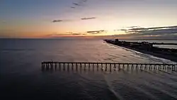 The Gulf Pier has been called an iconic part of Pensacola Beach by residents. It is maintained by Escambia County Public Works and the Santa Rosa Island Authority.[28] In addition to fishing,[29] the pier offers sightseeing marine wildlife such as dolphins and stingrays.[30][31] It has been closed and renovated a number of times due to storm and hurricane damage.[32][33][34]