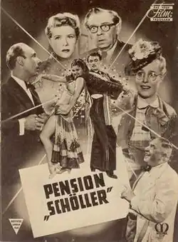 Pension Schöller is a 1952 West German comedy film directed by Georg Jacoby and starring Camilla Spira, Eva Ingeborg Scholz and Joachim Brennecke.[1] It was made at the Tempelhof Studios in West Berlin. The film's sets were designed by the art director Erich Kettelhut. It is an adaptation of the 1890 play Pension Schöller by Wilhelm Jacoby and Carl Laufs. Georg Jacoby was Wilhem's son, and made three film adaptation of his father's best known play in 1930, 1952 and 1960.
