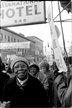 Jones' most notable accomplishment on the Commission was to lead the fight for a period against the eviction of impoverished residents at the International Hotel by the Four Seas Corporation.[54] With Jones as Chairman, the Housing Authority voted to acquire the building using $1.3 million in federal funds in order to transfer ownership to tenants rights groups.[54]