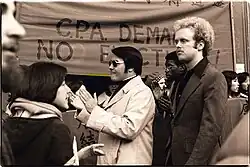 In November 1976, Unita Blackwell, a Mississippi mayor and civil rights activist, spoke at the Geary Boulevard Temple about her trip to the People's Republic of China with actress Shirley MacLaine.[77] Two men were caught eavesdropping at the front door and quickly fled in a rental car.[77] The Temple traced the car's license plates to a government electronics expert.[77] After a series of letters with Congressman Phillip Burton, the U.S. Air Force stated that the civilian was in their employ but that he was off the day of the Blackwell speech.[77] This event was added to the growing list of alleged conspiratorial actions against the Temple.[76][77]