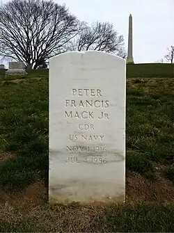 Mack served as assistant to the president of Southern Railway from 1963 to 1975, and owned and operated the Peter Mack Company, a real estate and investment firm. In 1976, Mack attempted a political comeback running against Findley. Findley defeated Mack with 63.6% of the vote to Mack's 36.4% of the vote.[8][9] He was a resident of Potomac, Maryland, until his death in Rockville, Maryland on July 4, 1986. Mack was interred in Arlington National Cemetery.