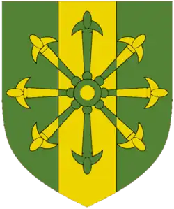 Vert a Pale Or over all an Escarbuncle counterchanged.