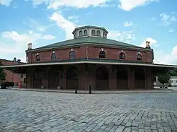 During the Antebellum period Petersburg became the slave states' eleventh largest city, and 49th among all American cities in industrial development.[17] Commission merchants (39 firms by 1860) bought agricultural products from nearby Dinwiddie County as well as points to the north, south and west and sold supplies. Petersburg's industrialists processed cotton, tobacco and metal, then shipped the resulting products out of the region. Richmond and Petersburg became the two largest tobacco towns in the world, with Richmond selling 61% of the state's tobacco in 1861, and Petersburg 23%. Petersburg's cotton industry relied on waterpower since its inception in the 1830s, and by 1860 towns had developed around the Lynch and Callender mills at Ettick and Matoaca and Battersea across the Appomattox river, and the Merchant's Manufacturing Company had another mill at Campbell Bridge near Ettrick. Together those cotton mills constituted approximately a third of that industry in the state. The town also had three water-powered flour mills by 1860, and five iron foundries.[18]
