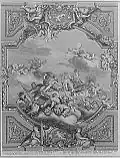 Petite galerie – view of the central ceiling vault, engraving by Simon Thomassin (1655-1733) after Pierre Mignard (1612-1695), late 17th century Deuxième salon de la Petite galerie – view of the ceiling vault, engraving after Pierre Mignard (1612-1695), late 17th century Salon de l'abondance detail of the ceiling depicting Louis XIV's nef that was housed in the cabinet des médailles, René-Antoine Houasse (1645-1710), 1683