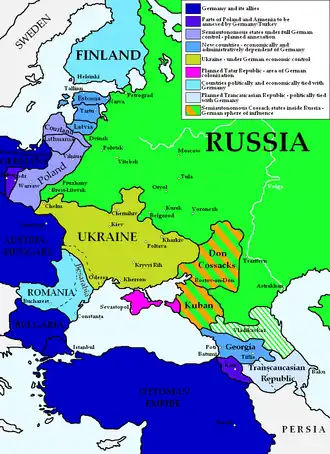 His main contribution was Romania's alignment with the Triple Alliance, negotiated by him in meetings with Bismarck.[66] He was immersed in this project, as noted by historian Rudolf Dinu: "[his] activity in certain moments exceeded by far the level of a mere negotiator".[67] Brătianu personally thanked his envoy soon after the deal was sealed: "only now can we say that [Romania] has her future ensured."[3] Celebrated by those who opposed Russia, the treaty was for long kept a secret. Besides the Premier, Carp, and Maiorescu, only eight other politicians[68] and none of the succeeding Ambassadors to Austria[67] were informed of Brătianu's action, down to 1914. Although the Triple Alliance regrouped Romania and Austria-Hungary, Carp opposed the Austrians for discriminating against Romania on the issue of navigation,[3][69] and resented their attempts to direct Germany's foreign policies.[70]