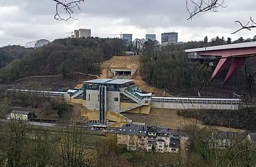 - ^ Holzer, Thomas (2 July 2015). "63 secondes pour aller du Pfaffenthal au Kirchberg" [Pfaffenthal to Kirchberg in 63 seconds]. L'essentiel. Retrieved 2 February 2019.