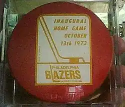 The Philadelphia Blazers were an ice hockey franchise in the World Hockey Association (WHA) for the 1972–73 WHA season based in Philadelphia. The team's home ice was the Philadelphia Convention Hall and Civic Center.[1][2][3][4][5][6]