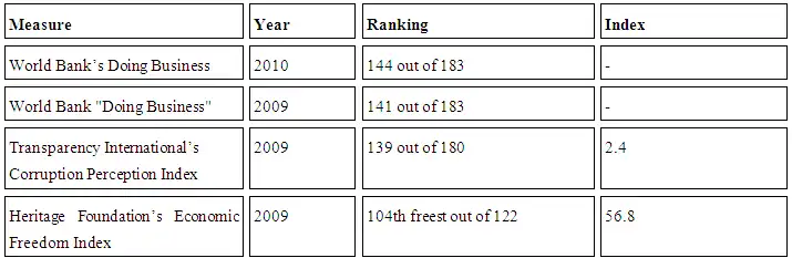 The report on Global Competitiveness for 2010-2011[9] showed that the evident corruption in the country followed by inefficient government bureaucracy posed to be the most problematic factors hindering business growth or further investments in the country. This was further supported by Asian Development Bank. According to ADB’s report,